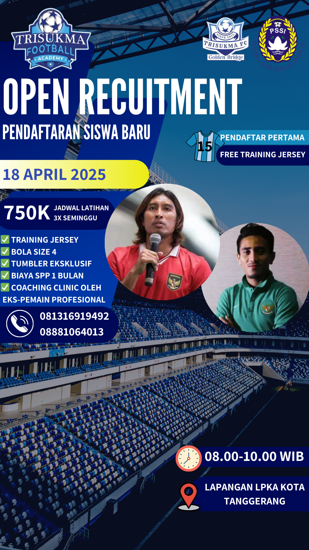 Gabung dengan Trisukma Football Academy dan wujudkan impianmu menjadi pemain sepak bola profesional. Latihan intensif, pelatih berpengalaman, dan fasilitas lengkap menantimu!